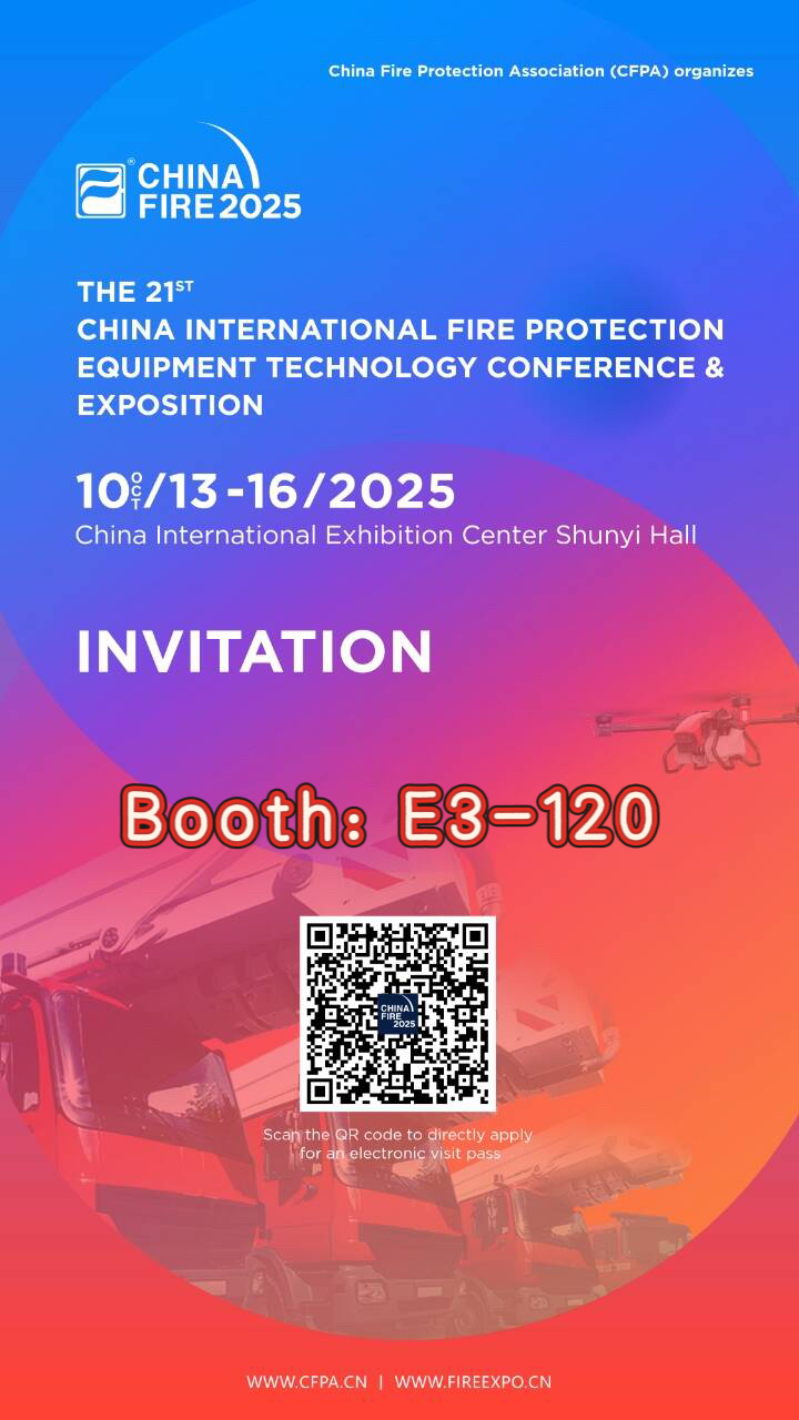 Wij nodigen professionals uit de sector, partners en klanten van harte uit om ons te bezoeken Stand E3-120 , waar we ons uitgebreide assortiment hoogwaardige brandbestrijdingsproducten zullen tentoonstellen.